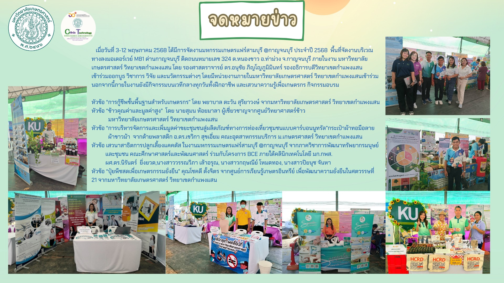 มหาวิทยาลัยเกษตรศาสตร์ วิทยาเขตกำแพงแสน เข้าร่วม โครงการมหกรรมงานวิจัย สิ่งประดิษฐ์ นวัตกรรม งานสร้างสรรค์ และทรัพย์สินทางปัญญา ประจำปี 2568 (RMUTR RESEARCH & IP EXPO 2025)" Continue reading