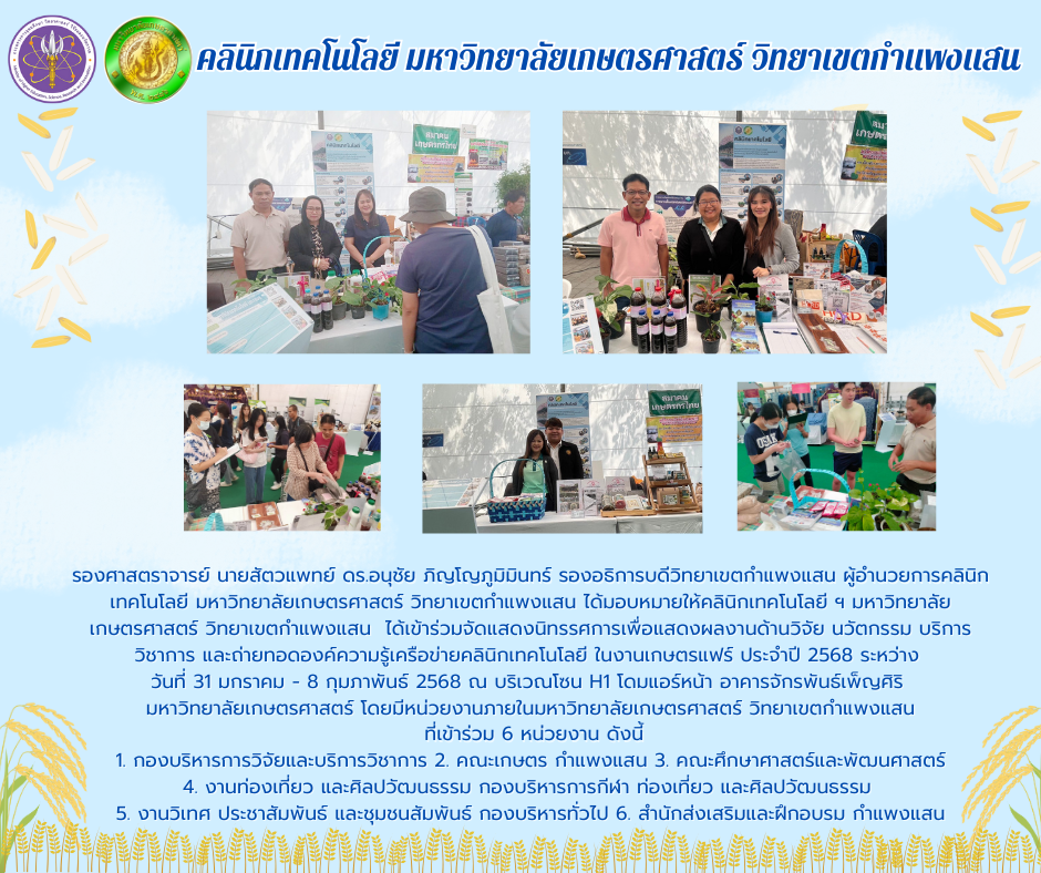 คลินิกเทคโนโลยีฯ มก.กพส. ได้เข้าร่วมจัดแสดงนิทรรศการเพื่อแสดงผลงานด้านวิจัย นวัตกรรม บริการวิชาการ และถ่ายทอดองค์ความรู้เครื่องจักรกลด้านเทคโนโลยี ในงานเกษตรแฟร์ ประจำปี 2568 Continue reading