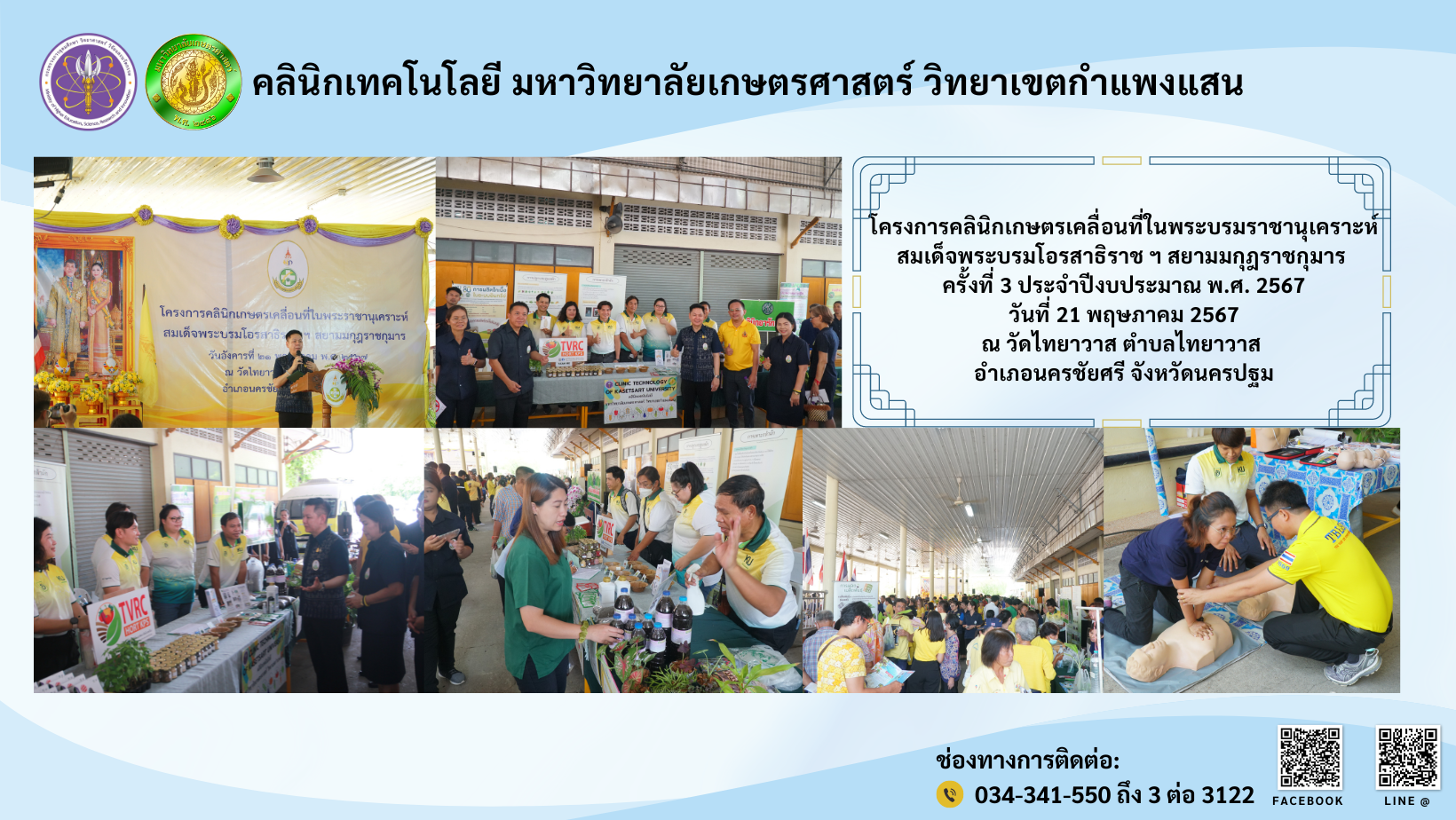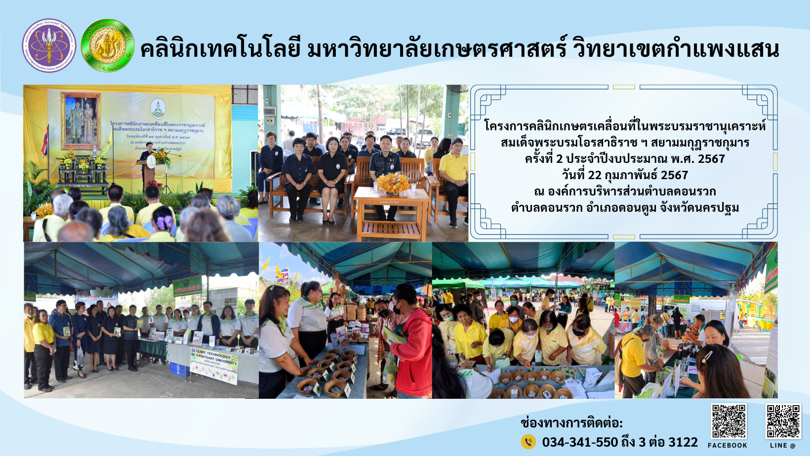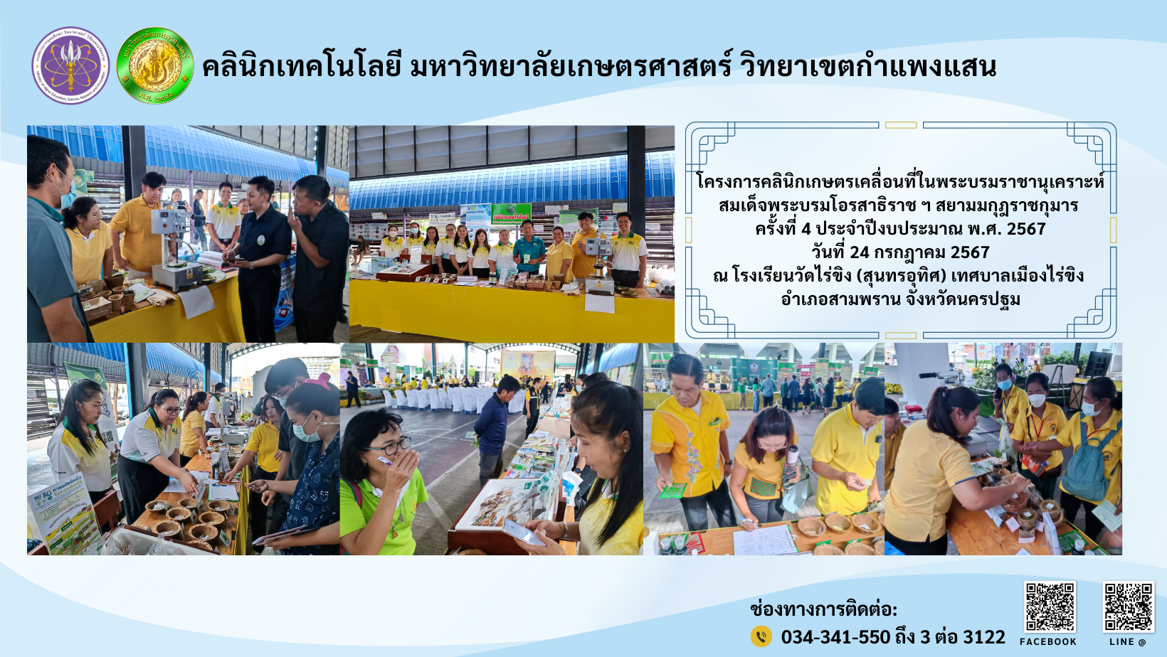 คลินิกเทคโนโลยี มหาวิทยาลัยเกษตรศาสตร์ วิทยาเขตกำแพงแสน เข้าร่วมโครงการคลินิกเกษตรเคลื่อนที่ในพระบรมราชานุเคราะห์ สมเด็จพระบรมโอรสาธิราช ฯ สยามมกุฎราชกุมาร ครั้งที่ 4 ประจำปีงบประมาณ พ.ศ. 2567 Continue reading
