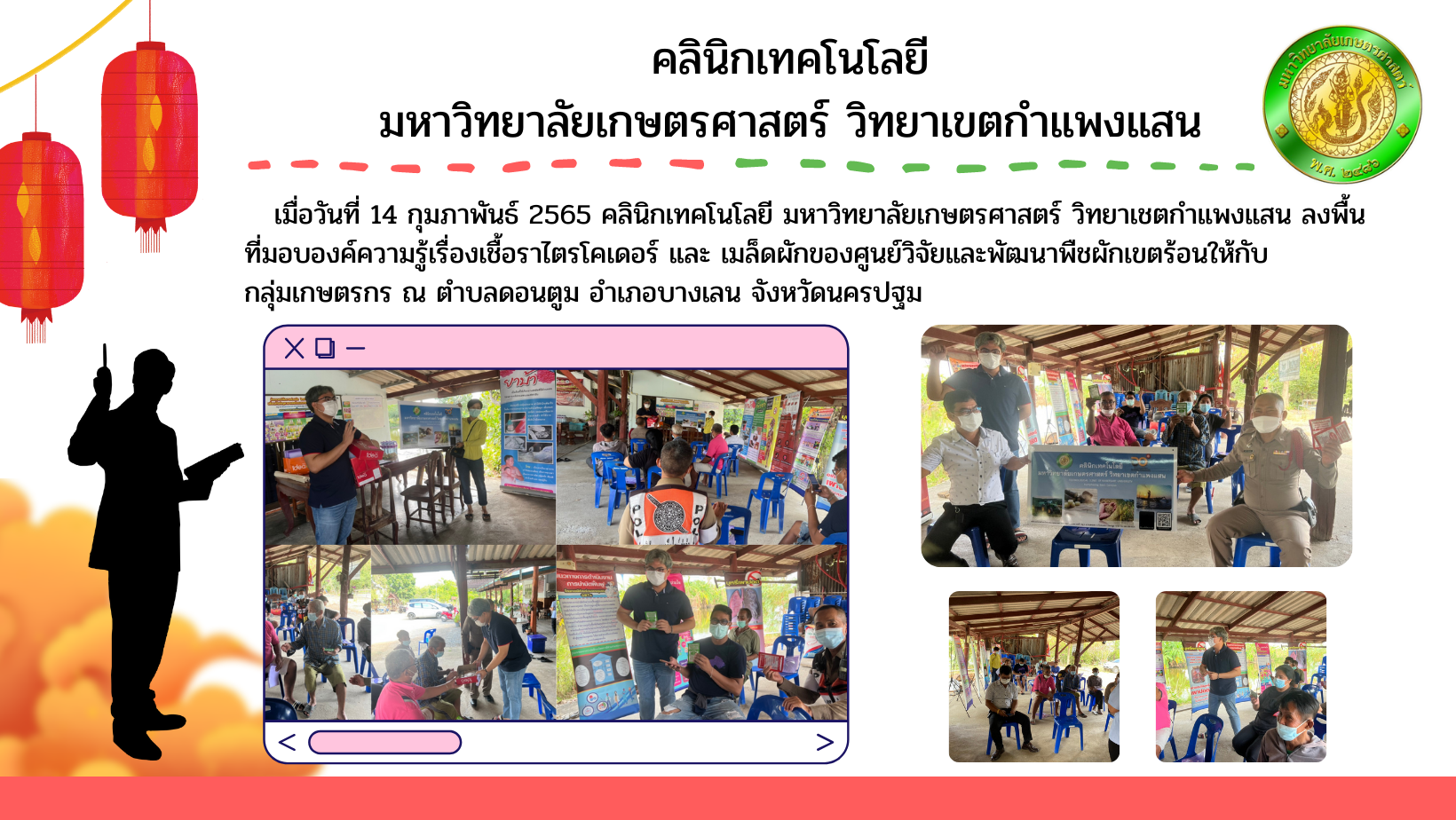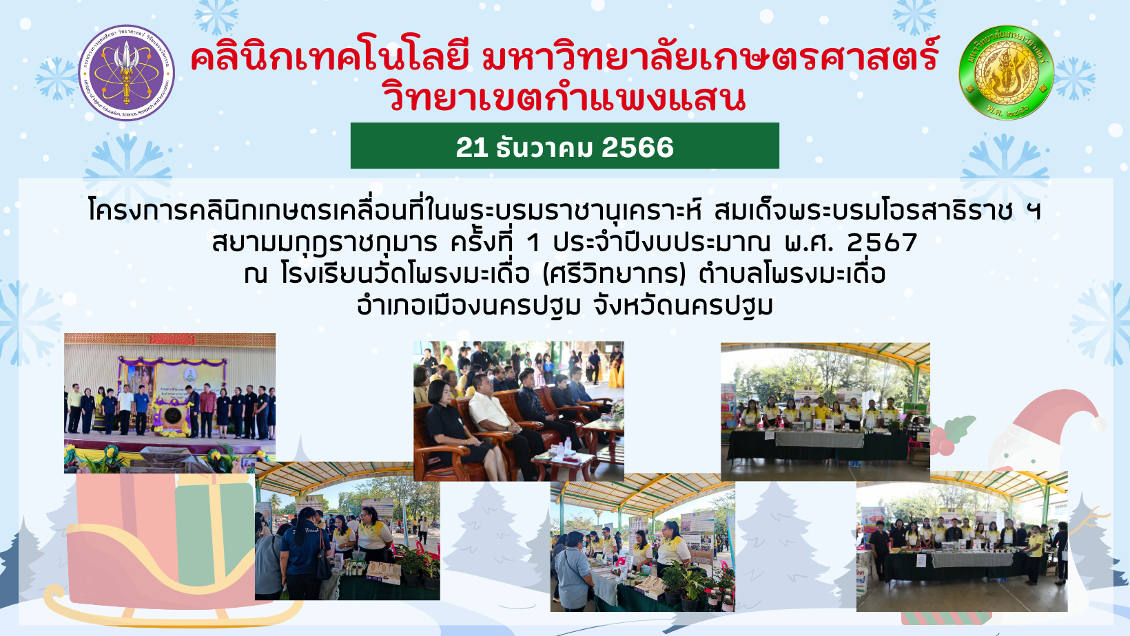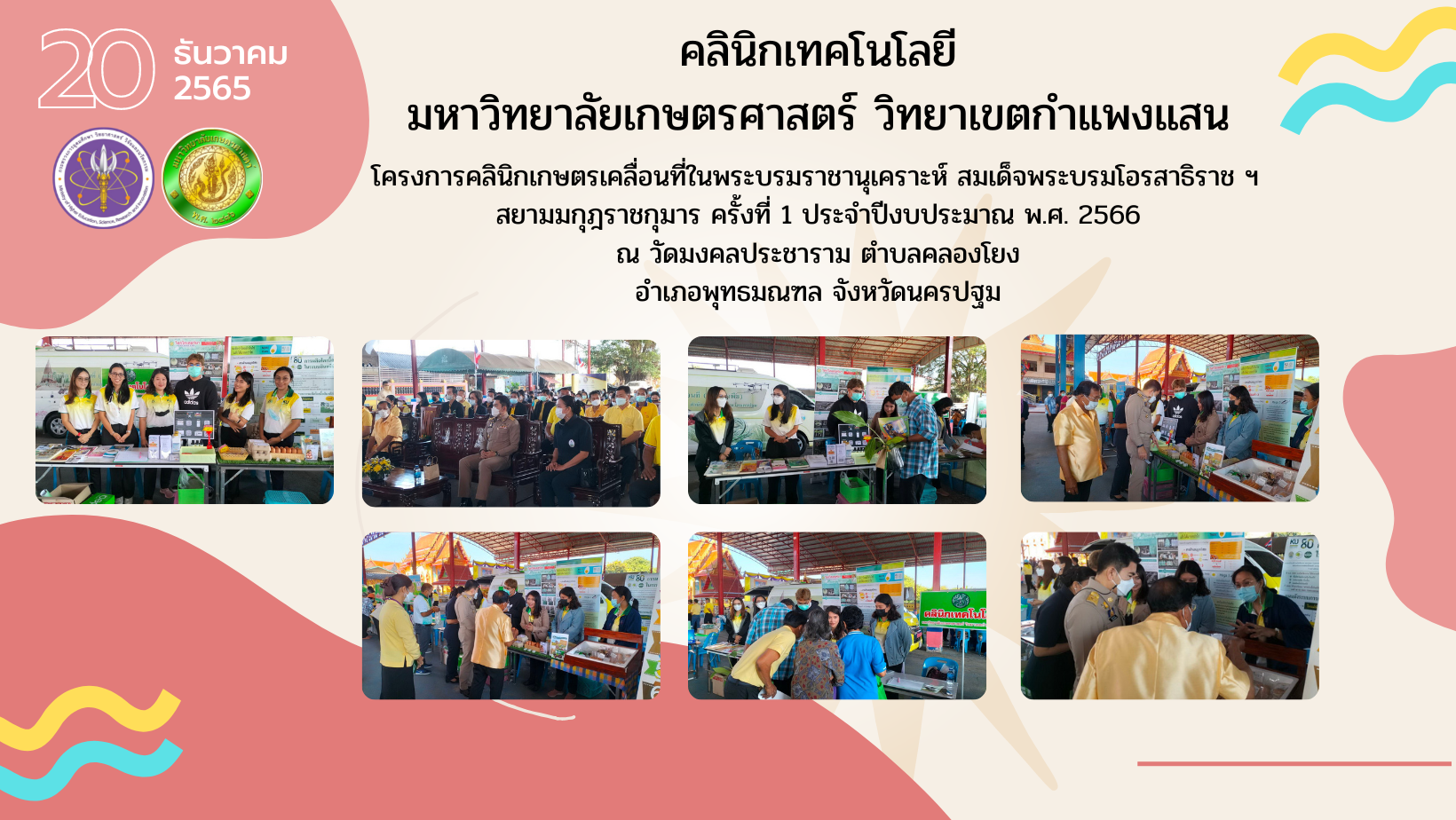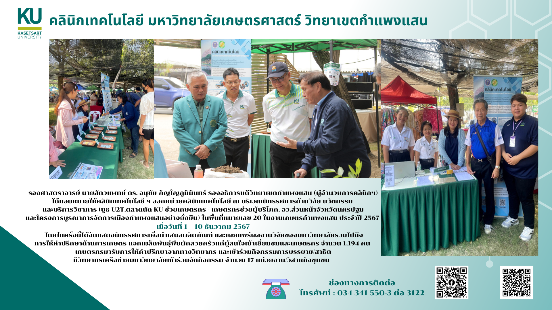 คลินิกเทคโนโลยี มหาวิทยาลัยเกษตรศาสตร์ วิทยาเขตกำแพงแสน เข้าร่วมโครงการคลินิกเกษตรเคลื่อนที่ในพระบรมราชานุเคราะห์ สมเด็จพระบรมโอรสาธิราช ฯ สยามมกุฎราชกุมาร ครั้งที่ 4 ประจำปีงบประมาณ พ.ศ. 2567 Continue reading
