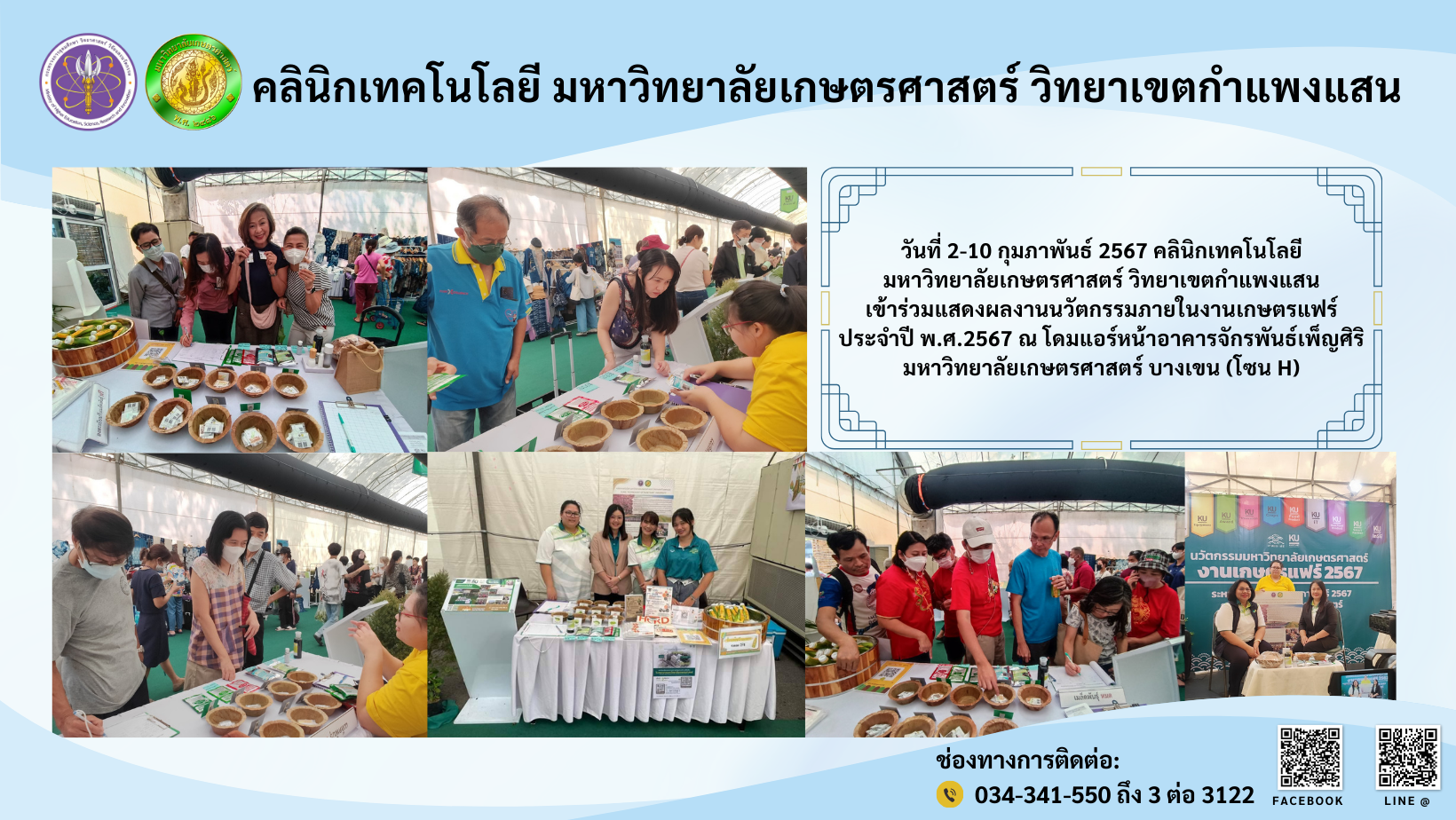 คลินิกเทคโนโลยี มหาวิทยาลัยเกษตรศาสตร์ วิทยาเขตกำแพงแสนเข้าร่วมแสดงผลงานนวัตกรรมงานเกษตรแฟร์ ประจำปี พ.ศ.2567 Continue reading