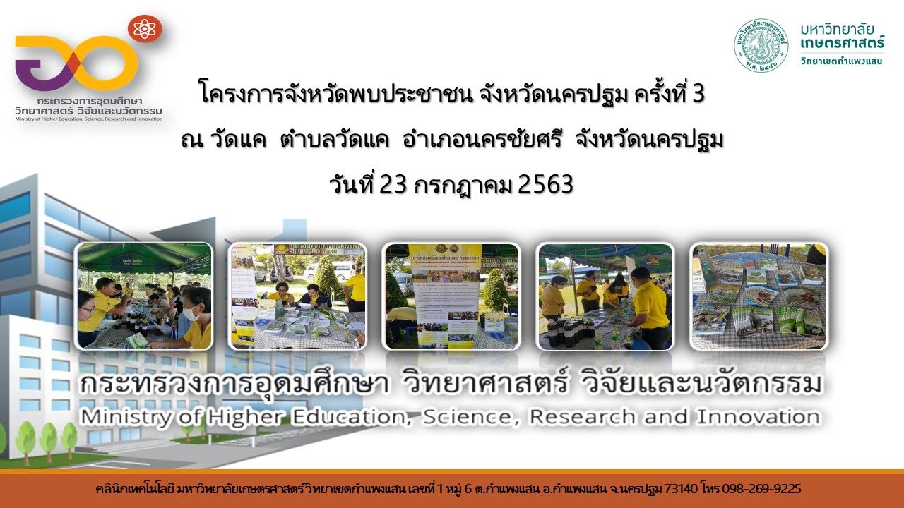 มหาวิทยาลัยเกษตรศาสตร์ กพส.เข้าร่วม โครงการจังหวัดพบประชาชน จังหวัดนครปฐม ครั้งที่ 3 ณ วัดแค ตำบลวัดแค อำเภอนครชัยศรี จังหวัดนครปฐม Continue reading